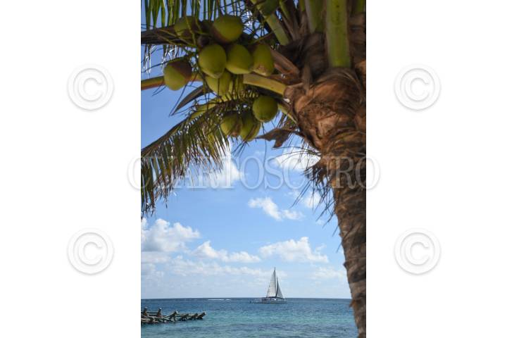 Una embarcación navega por las aguas del caribe mexicano.