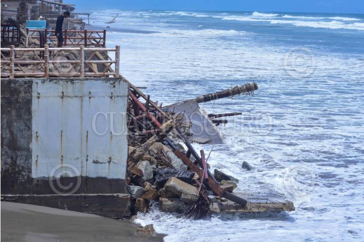 ACAPULCO, GUERRERO, 10JUNIO2025.- El fenómeno de mar de fondo continúa afectando las playas de la Zona Diamante de Acapulco. En la playa Bonfil, varios restaurantes presentan daños causados por el oleaje, y la franja de arena se ha perdido en gran medida. Este fenómeno inició después del paso de los huracanes Otis y John, y se ha intensificado con el inicio de la temporada de lluvias, lo que ha provocado daños adicionales en la zona. FOTO: CARLOS ALBERTO CARBAJAL/CUARTOSCURO.COM