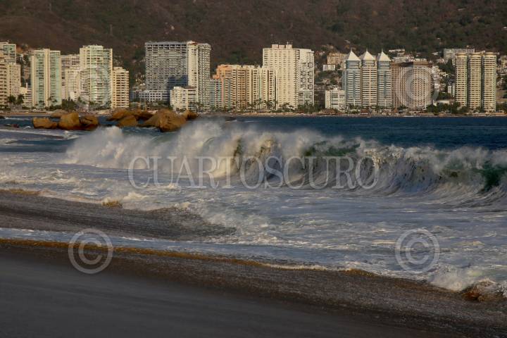 Fuerte oleaje se registra en las playas de Acapulco, Guerrero, debido al fenómeno de mar de fondo.