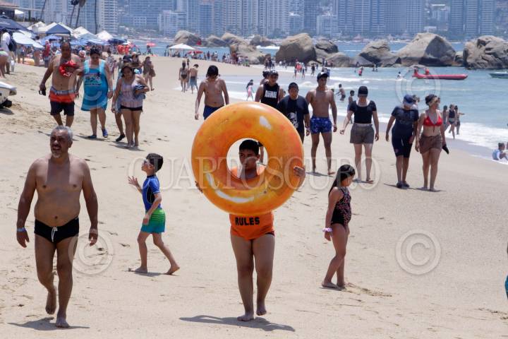Turistas visitan las playas del puerto de Acapulco, Guerrero a pesar del fenómeno de Mar de Fondo.