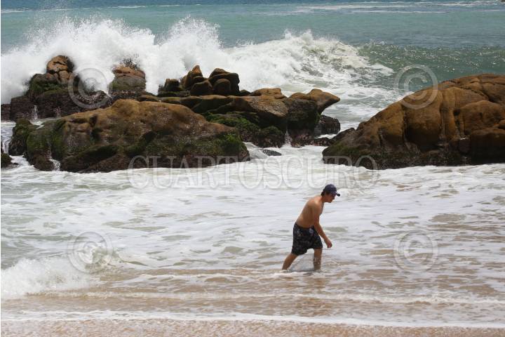 Turistas se pasean por las playas del puerto de Acapulco, Guerrero, a pesar del alto oleaje por el fenómeno de mar de fondo.