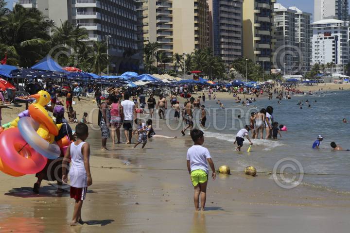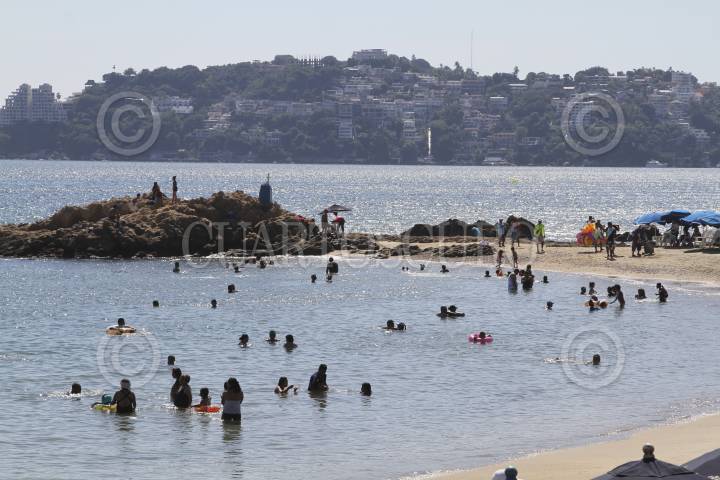 ACAPULCO, GUERRERO, 20MAYO-. Con un 90% de ocupación hotelera el puerto de Acapulco continua con una considerable afluencia de bañistas en las principales playas, debido a esto las advertencias de Mar de fondo y alto oleaje permanecen por parte de las autoridades. FOTO: BERNANDINO FERNÁNDEZ /CUARTOSCURO.COM