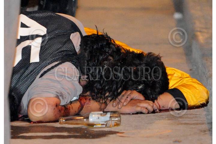 CHIMALHUACAN, EDO. DE MÉXICO, D.F., 18JUNIO2009.- Dos sujetos que fueron ejecutados cuando salían del bar La Maraka, ubicado en las calles Avenida de los Patos y Peñón en Chimalhuacan Estado de México. FOTO: LUZ ACEVEDO/CUARTOSCURO.COM