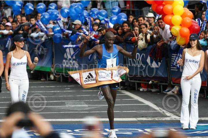 MÉXICO, D.F., 17AGOSTO2008.- El atleta keniata Hillary Kimaiyo, terminó primero en la edición XXVI del Maratón Internacional de la Ciudad de México, al marcar un tiempo de 2:13.05 horas. FOTO: ISAAC ESQUIVEL/CUARTOSCURO.COM
