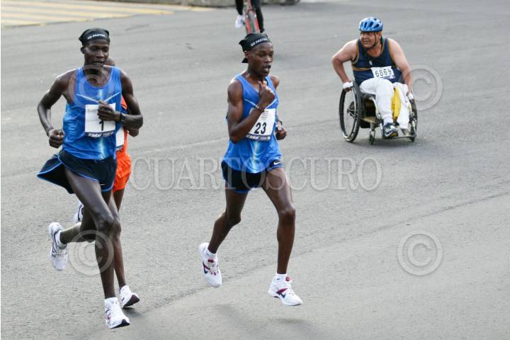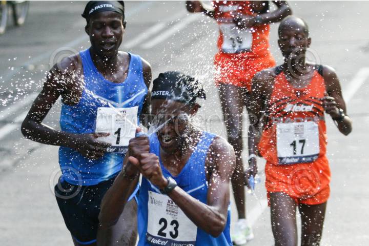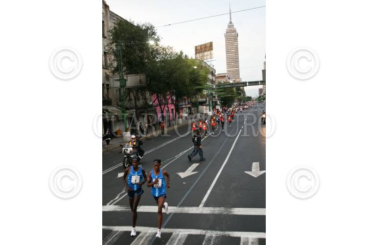 MÉXICO, D.F., 17AGOSTO2008.- Los corredores keniatas Hillary Kimaiyo y Julius Keter dominaron de principio a fin la edición XXVI del Maratón Internacional de la Ciudad de México, realizada en las principales calles de la ciudad. FOTO: ISAAC ESQUIVEL/CUARTOSCURO.COM