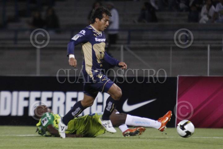 MÉXICO, D.F., 18MARZO2010.- Ismael Iñiguez (PUMAS) conduce el balón en el partido donde los Pumas de la UNAM vencieron 5 goles a uno a CD Marathon de la Liga de Campeones de la CONCACAF disputado en el estadio de Ciudad Universitaria. FOTO: IVÁN STEPHENS/CUARTOSCURO.COM