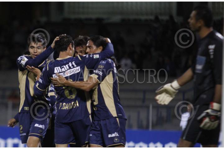 MÉXICO, D.F., 18MARZO2010.- Ismael Iñiguez (PUMAS) festeja con el equipo el gol que anotó en el partido donde los Pumas de la UNAM vencieron 5 goles a uno a CD Marathon de la Liga de Campeones de la CONCACAF disputado en el estadio de Ciudad Universitaria. FOTO: IVÁN STEPHENS/CUARTOSCURO.COM
