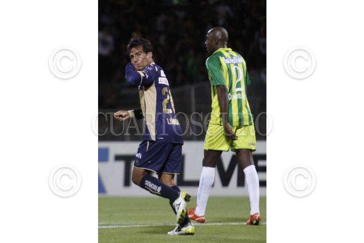 MÉXICO, D.F., 18MARZO2010.- Ismael Iñiguez (PUMAS) festeja el gol que anotó en el partido donde los Pumas de la UNAM vencieron 5 goles a uno a CD Marathon de la Liga de Campeones de la CONCACAF disputado en el estadio de Ciudad Universitaria. FOTO: IVÁN STEPHENS/CUARTOSCURO.COM