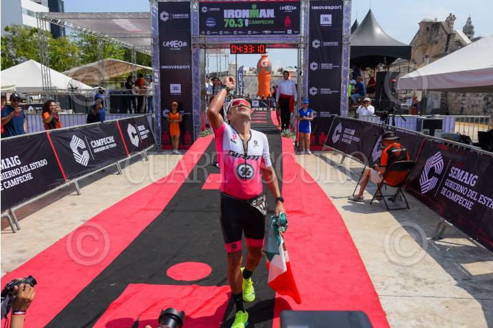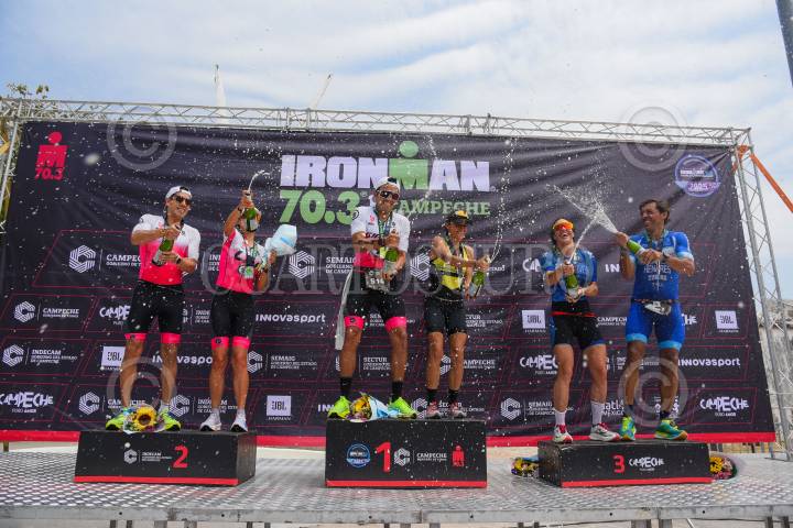 CAMPECHE, CAMPECHE, 16MARZO2025.- Este domingo se llevó a cabo la competencia del Iron Man 70.3 en la ciudad amurallada de Campeche, donde compitieron atletas de varios países compitieron en tres etapas, nado, bicicleta y carrera. Los ganadores en la rama varonil fueron primer lugar Juan Manuel Aguilar, Mijail Espinoza segundo lugar y tercer lugar, Isaac Henares, y en la rama femenil el primer lugar fue para, Andrea Gutiérrez, segundo lugar, Úrsula Legaria, y tercer lugar, Fernanda Bau. FOTO: MICHAEL BALAM/CUARTOSCURO.COM
