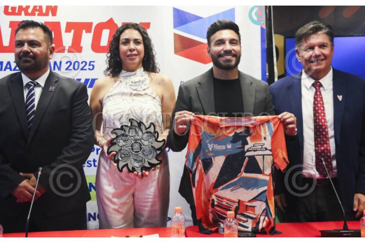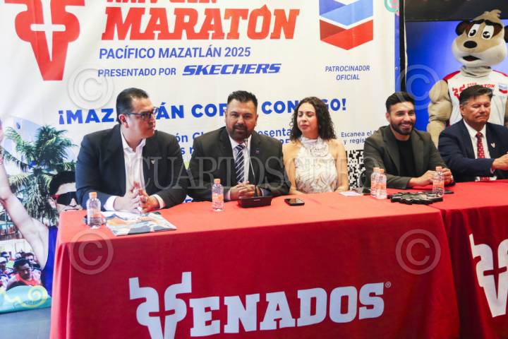 CIUDAD DE MÉXICO, 27MARZO2025.- Presentación oficial del XXIV Gran Maratón y Triatlón Pacífico Mazatán en la secretar´ia de Turismo Federal. Paul Luque, Lusi Roberto Ontiveros, Michelle Aguilar, Julio Cascajares, Ismael Barros y Luis MIguel Rodríguez, en conferencia de prensa. FOTO: VICTORIA VALTIERRA/CUARTOSCURO.COM