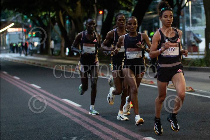 CIUDAD DE MÉXICO, 25AGOSTO2024.- En punto de las 05:45 horas, dio inicio la XLI edición del Maratón de la Ciudad de México Telcel 2024, en donde 30 mil corredoras y corredores de todo el mundo recorrieron las vialidades principales de la capital del país, así como monumentos emblemáticos, en la fiesta deportiva más grande del año. Los deportistas conquistaron la ruta de 42.195 km desde el Estadio Olímpico Universitario, pasando por la Avenida de los Insurgentes, las colonias Nápoles, Chapultepec, Roma, Condesa y Polanco, para avanzar por Avenida Paseo de la Reforma, Avenida Juárez y culminar el recorrido en el corazón de la Ciudad de México, el Zócalo capitalino. El podio varonil estuvo conformado por atletas Kenianos, en primer lugar el maratonista de 31 años, Edwin Kiprop Kiptoo; en segunda posición, Leonard Langat, de 28 años, y en tercero Francis Cheruiyot, de 30 años, que se colocó en el tercer peldaño. En la rama femenil, la corredora que aseguró el primer lugar, originaria de Kenia, fue Fancy Chemutai, de 30 años; seguida de Shitaye Eshete Habte, de 34 años, proveniente de Bahrain, y en tercer lugar, Janet Ruguru Gichumbi, la keniana de 31 años que completó el podio. FOTO: GOBIERNO DE LA CIUDAD DE MÉXICO/CUARTOSCURO.COM