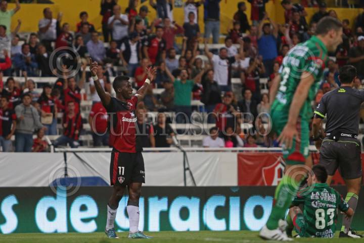 GUADALAJARA, JALISCO. 07NOVIEMBRE2015.- El jugador del Atlas Franco Arizala, celebra su anotación en el juego, esto en partido correspondiente a la Jornada 15 del Torneo Apertura 2015 de la Liga MX, en donde se enfrentan los equipos de los Zorros del Atlas frente a Jaguares de Chiapas, en partido que se juega en el Estadio Jalisco.FOTO: FERNANDO CARRANZA GARCIA / CUARTOSCURO.COM