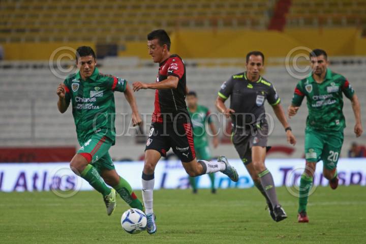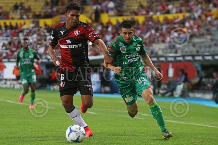 GUADALAJARA, JALISCO. 07NOVIEMBRE2015.- El jugador del Atlas Daniel Álvarez, disputa un balón frente al contrario de Jaguares Francisco Silva, esto en partido correspondiente a la Jornada 15 del Torneo Apertura 2015 de la Liga MX, en donde se enfrentan los equipos de los Zorros del Atlas frente a Jaguares de Chiapas, en partido que se juega en el Estadio Jalisco y en donde el marcador final fue 3-2 a favor del equipo visitante.. FOTO: FERNANDO CARRANZA GARCIA / CUARTOSCURO.COM