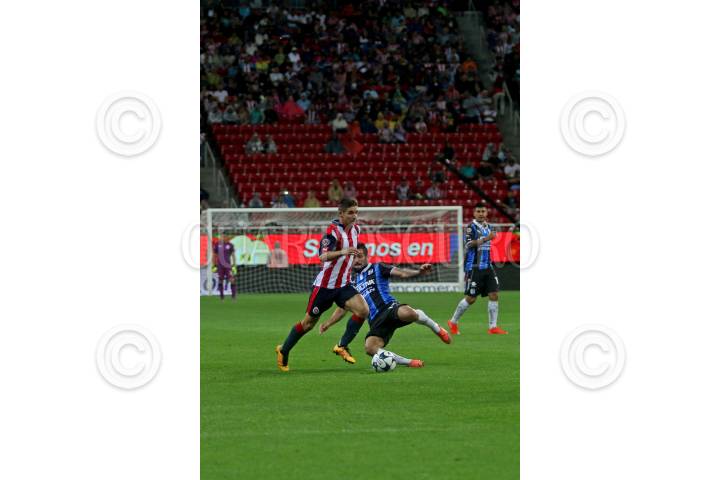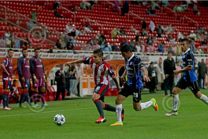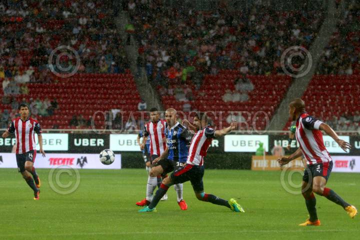 ZAPOPAN, JALISCO. 06AGOSTO2016.- Isaac Brizuela, jugador de Chivas disputa un balón a Luis Noriega de Querétaro en partido correspondiente a la Jornada 4 del Torneo Apertura 2016 de la Liga MX en donde se enfrentaron las Chivas de Guadalajara frente a los Gallos Blancos de Querétaro, en encuentro que se llevo a cabo en el Estadio Chivas. El marcador al final del juego fue de 0-0. FOTO : FERNANDO CARRANZA GARCIA / CUARTOSCURO.COM