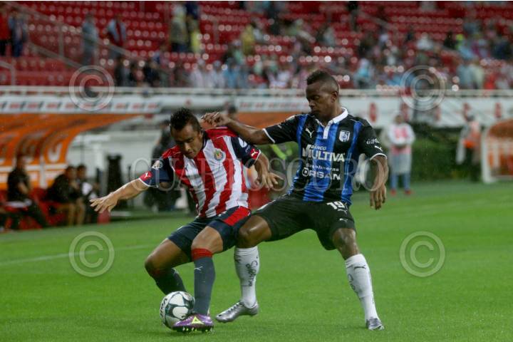 ZAPOPAN, JALISCO. 06AGOSTO2016.- Edwin Hernández, jugador de Chivas disputa un balón a Yerson Candelo de Querétaro en partido correspondiente a la Jornada 4 del Torneo Apertura 2016 de la Liga MX en donde se enfrentaron las Chivas de Guadalajara frente a los Gallos Blancos de Querétaro, en encuentro que se llevo a cabo en el Estadio Chivas. El marcador al final del juego fue de 0-0. FOTO : FERNANDO CARRANZA GARCIA / CUARTOSCURO.COM