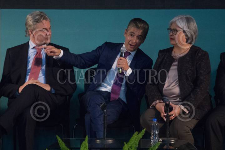 CIUDAD DE MÉXICO, 22AGOSTO2019.- Juan Lozano Tovar, titular del IMPI; y Graciela Márquez Colín, secretaria de Economía, presidio la presentación del programa "En un clic, el IMPI de tu lado", esta consta de una plataforma lanzada por el Instituto Mexicano de la Propiedad Industrial en el que podrán tramitar de manera sencilla el registro de una marca o patente en línea. FOTO: MOISÉS PABLO /CUARTOSCURO.COM
