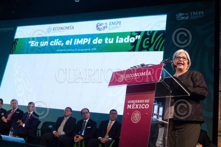 CIUDAD DE MÉXICO, 22AGOSTO2019.- Graciela Márquez Colín, secretaria de Economía, presidio la presentación del programa "En un clic, el IMPI de tu lado", esta consta de una plataforma lanzada por el Instituto Mexicano de la Propiedad Industrial en el que podrán tramitar de manera sencilla el registro de una marca o patente en línea. FOTO: MOISÉS PABLO /CUARTOSCURO.COM