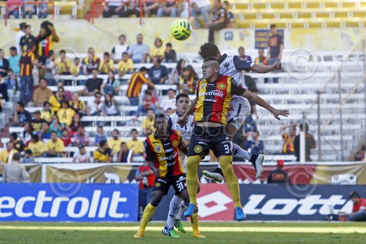 GUADALAJARA, JALISCO. 19ABRIL2015.- El jugador de Leones Negros Marcelo Alatorre, disputa un balón frente al contrario de Pachuca Walter Ayovi, esto en partido correspondiente a la Jornada 14 del Torneo Clausura 2015 de la Liga MX, en donde se enfrentan los equipos de los Leones Negros de la Universidad de Guadalajara frente a los Tuzos del Pachuca en el Estadio Jalisco. FOTO: FERNANDO CARRANZA GARCIA / CUARTOSCURO.COM