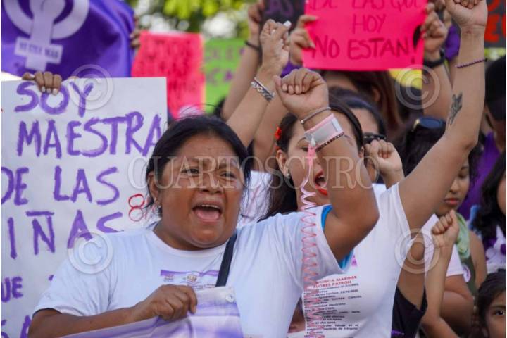 CANCÚN, QUINTANA ROO, 08MARZO2024.- Miles de mujeres marchan en esta ciudaw por la conmemoración del día internacional de la mujer. FOTO: ELIZABETH RUIZ/CUARTOSCURO.COM