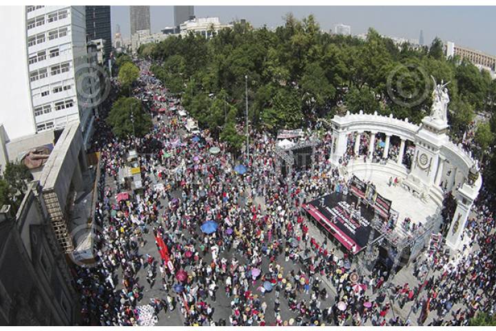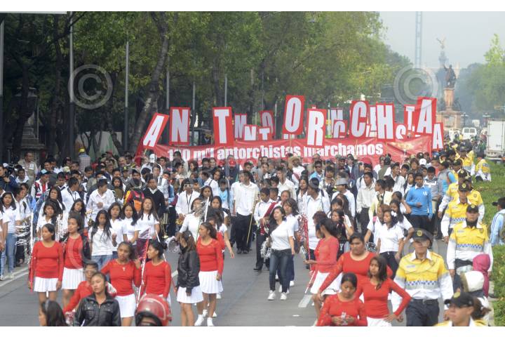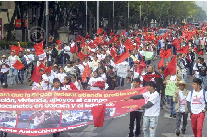 MÉXICO, D.F., 06OCTUBRE2015.- Miles de integrantes de Antorcha Campesina realizaron una marcha que empezó en el Ángel de la Independencia y culminó en el zócalo capitalino, los manifestantes piden se construyan viviendas y escuelas de tiempo completo. FOTO: ARMANDO MONROY /CUARTOSCURO.COM