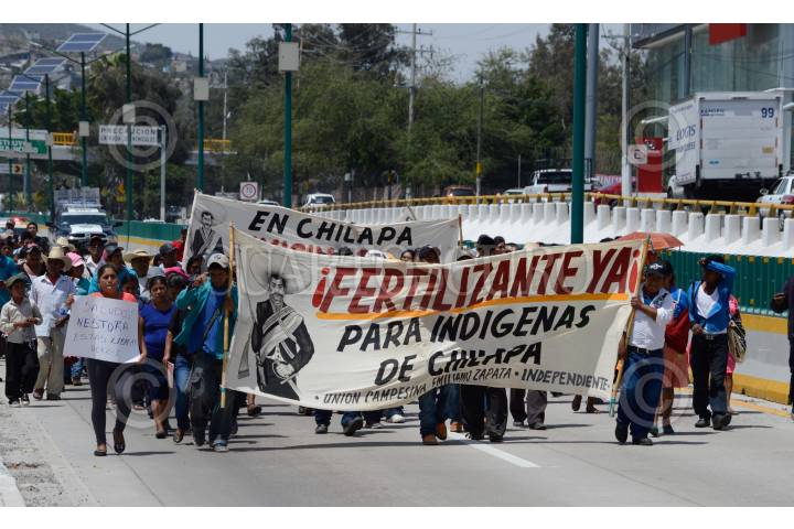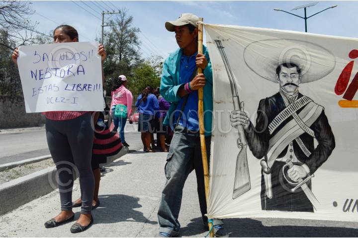 CHILPANCINGO, GUERRERO, 18MARZO2016.- Integrantes de la Unión Campesinos Emiliano Zapata Independiente (UCEZI), que encabeza Sofía Mendoza Martínez, viuda del líder asesinado Arturo Hernández Cardenas, marcharon sobre la Autopista del Sol con dirección al Palacio de Gobierno para exigir fertilizante para cuarenta familias. FOTO: JOSÉ I. HERNÁNDEZ / CUARTOSCURO.COM