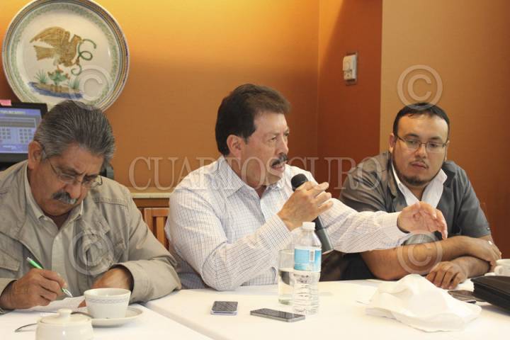 CIUDAD DE MÉXICO, 29JULIO2016.- Álvaro López Ríos, Federico Ovalle, Marco Antonio Ortiz y Francisco Chew Plascencia, dirigentes del Frente Autentico del Campo, ofrecieron una conferencia de prensa para dar a conocer los pormenores de la marcha que el próximo 8 de agosto harán 120 mil campesinos hacia el Zócalo de la Ciudad de México. FOTO: CUARTOSCURO.COM