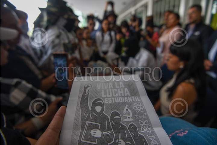 METEPEC, ESTADO DE MÉXICO, 10JUNIO2025.- Bolantes de Viva la lucha estudiantil fueron repartidos por integrantes del Enjambre Estudiantil Unificado de la UAEMÉX que iniciaron una Marcha del Silencio partiendo de La Casa del Estudiante, antes rectoría, arribaron a las instalaciones de Uniradio para que fueran escuchadas si peticiones y la comunidad universitaria y población en general que sintoniza esta estación de radio esté informada sobre el movimiento estudiantil que tiene poco más de un mes en paro. FOTO: CRISANTA ESPINOSA AGUILAR /CUARTOSCURO.COM