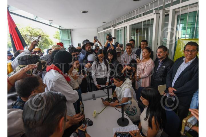 METEPEC, ESTADO DE MÉXICO, 10JUNIO2025.- Integrantes del Enjambre Estudiantil Unificado de la UAEMÉX hicieron uso de los micrófonos de Uniradio, al concluir la Marcha del Silencio que iniciaron en La Casa del Estudiante, antes rectoría, arribaron a las instalaciones de Uniradio para que fueran escuchadas si peticiones y la comunidad universitaria y población en general que sintoniza esta estación de radio esté informada sobre el movimiento estudiantil que tiene poco más de un mes en paro. FOTO: CRISANTA ESPINOSA AGUILAR /CUARTOSCURO.COM