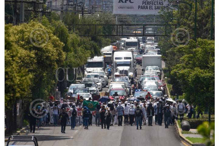 METEPEC, ESTADO DE MÉXICO, 10JUNIO2025.- Integrantes del Enjambre Estudiantil Unificado de la UAEMÉX caminan sobre la vialidad de José María Pino Suárez, como parte de la Marcha del Silencio que iniciaron de La Casa del Estudiante, antes rectoría, arribando a las instalaciones de Uniradio para que fueran escuchadas si peticiones y la comunidad universitaria y población en general que sintoniza esta estación de radio esté informada sobre el movimiento estudiantil que tiene poco más de un mes en paro. FOTO: CRISANTA ESPINOSA AGUILAR /CUARTOSCURO.COM