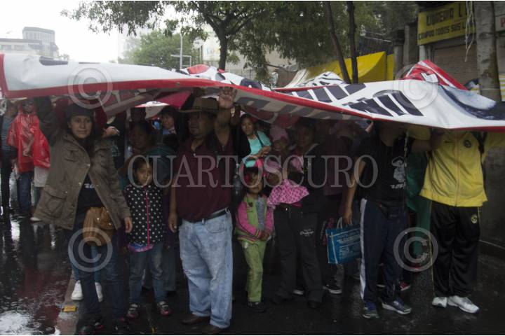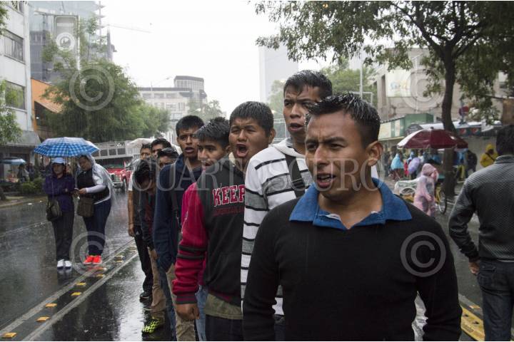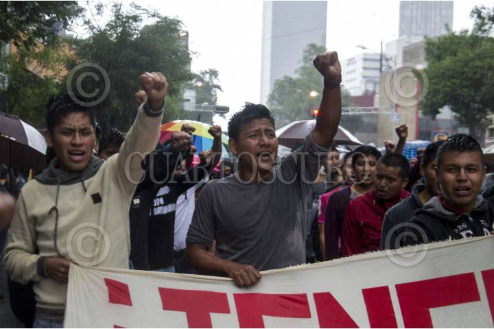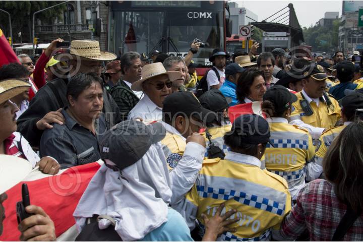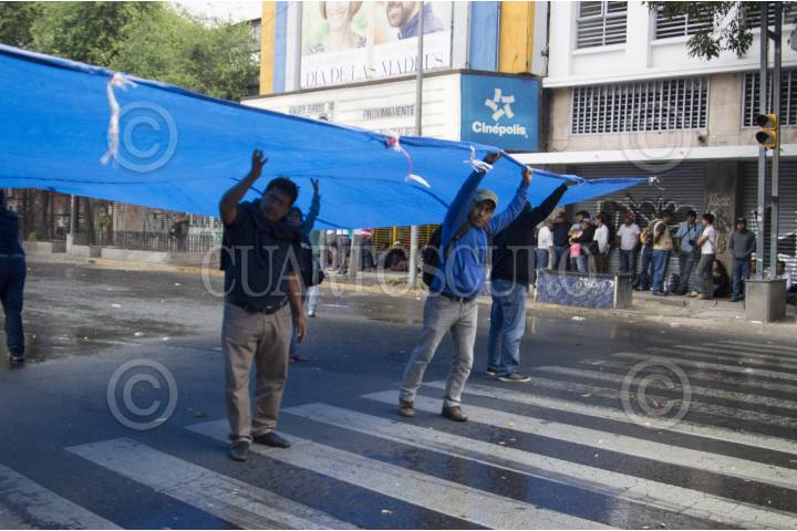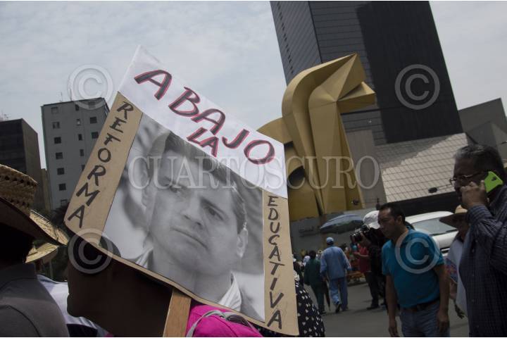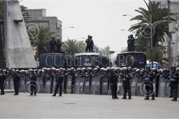 CIUDAD DE MÉXICO, 15MAYO2016.- Con motivo del Día del Maestro cientos de docentes integrantes de la Coordinadora Nacional de Trabajadores de la Educación marcharon de las inmediaciones del metro San Cosme a la Secretaría de Gobernación, donde planeaban instalar un plantón en repudio a la Reforma Educativa. Adelfo Gómez, secretario general de la sección 7 de la CNTE, ofreció un mitin en las inmediaciones del periódico “El Universal” en donde reitero que continuarán con el movimiento hasta que no se restituya a los maestros sancionados por no presentarse a la evaluación docente. Elementos de la Secretaría de Seguridad pública les restringieron el acceso a la secretaria a los manifestantes. FOTO: GALO CAÑAS /CUARTOSCURO.COM