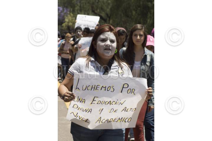 MÉXICO, DF., 09ABRIL2014.- Integrantes del Movimiento de Estudiantes Excluídos de la Educación Superior (MAES) marcharon, con el rostro pintado de blanco, desde la Facultad de Filosofía y Letras de la UNAM con dirección al edificio de Rectoría, para exigir a las autoridades universitarias se atienda el caso de los excluídos después de que hoy se presentaran los resultados del examen de ingreso, en el que sólo el 8 por ciento de los aplicantes fueron aceptados. Indicaron que son por lo menos 200 mil estudiantes los que han sido rechazados hasta el momento. Las demandas del MAES consisten en un aumento del presupuesto educativo, aumento de la matrícula y mayor número universidades a las que los estudiantes puedan ser canalizados con un pase directo. La UNAM destinó únicamente 9 mil lugares entre los más de 135 mil que aplicaron en esta primera vuelta. FOTO: MARÍA JOSÉ MARTÍNEZ /CUARTOSCURO.COM