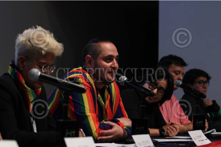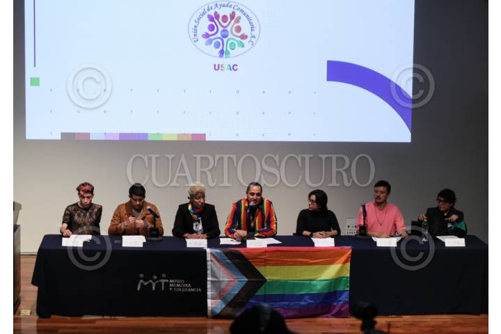 CIUDAD DE MÉXICO, 22FEBRERO2023.-Representantes de colectivas en defensa de los derechos de la población LGBTTTI+ llevaron a cabo la conferencia de prensa “Rumbo a la Marcha del orgullo LGBTTTI+”, para dar a conocer de la marcha del orgullo 2024. La conferencia se llevó a cabo en el Auditorio del Museo Memoria y Tolerancia. FOTO: ANDREA MURCIA /CUARTOSCURO.COM