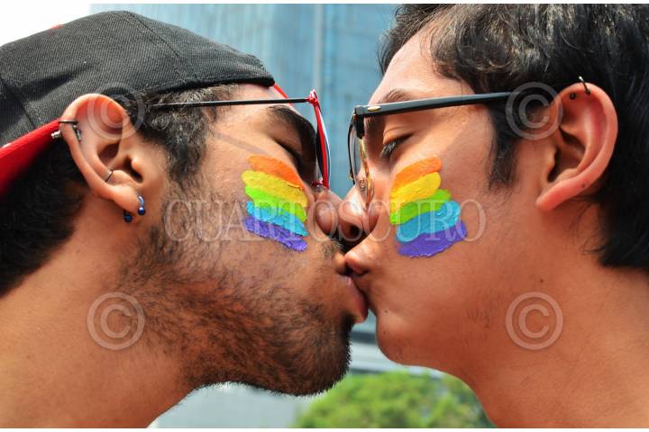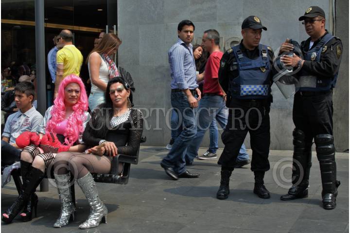 MÉXICO, D.F., 27JUNIO2015.- Integrantes de la comunidad LGBTTTI (lesbianas, gays, bisexuales, transexuales, transgénero, travestis e intersexuales) y afines al movimiento por la diversidad sexual, acudieron a la Marcha del Orgullo cuya asistencia fue aproximadamente de 18 mil personas. El contingente se desplazó del Ángel de la Independencia hasta el Zócalo, mientras los participantes lanzaban consignas que exigían la aprobación de la Ley de Identidad de Género y la igualdad de condiciones en materia de derechos humanos para las personas homosexuales y transgénero. FOTO: MARÍA JOSÉ MARTÍNEZ /CUARTOSCURO.COM