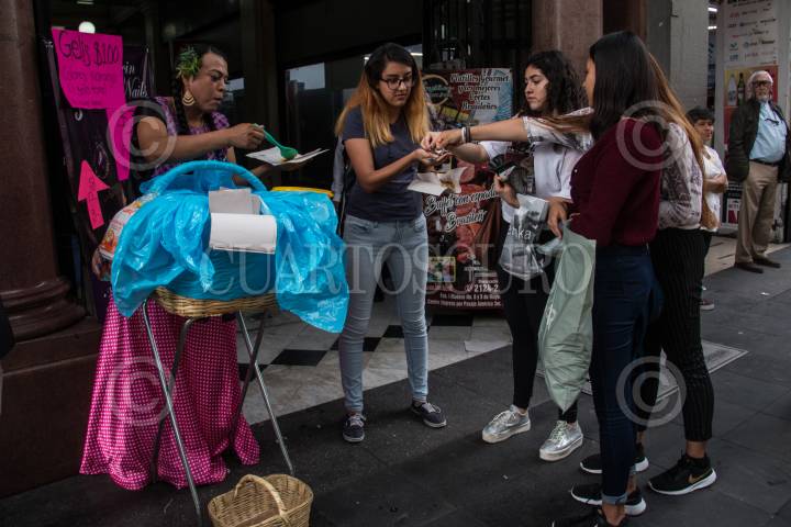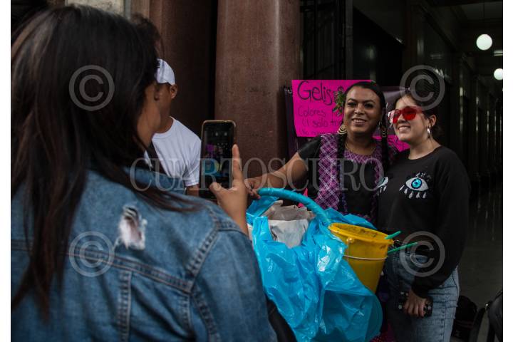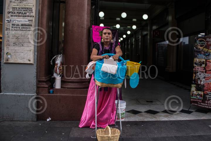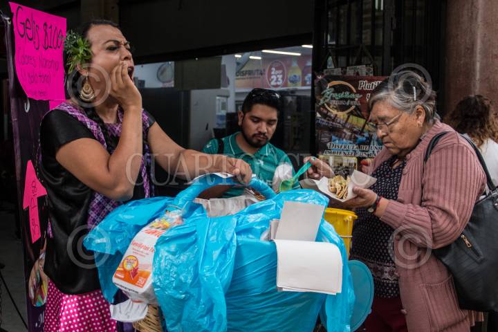 CIUDAD DE MÉXICO, 04JULIO2019.- En la calle Madero ubicada en el Centro Histórico de la Ciudad vende tacos de canasta Lady Tacos de Canasta, Mujer Muxe que grita con su voz ronca "Tacos, tacos de canasta" para que los transeúntes se animen a adquirir una orden. Muxe significa “mujer” en zapoteco. En la región del Istmo de Tehuantepec, en Oaxaca, existe un tercer género: las muxes (personas que nacen biológicamente como hombres y se visten como mujeres, pero no se consideran ni travestis ni transgénero). Lady Tacos de Canasta encabezo la primera participación de mujeres Muxes en la Marcha de Orgullo LGBTTTIQ. FOTO: ANDREA MURCIA /CUARTOSCURO.COM