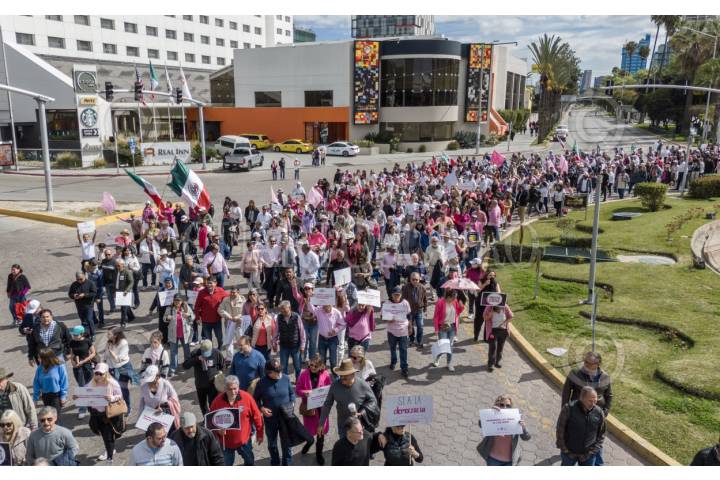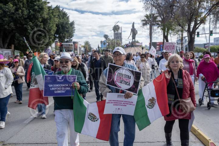 defaultTIJUANA, BAJA CALIFORNIA, 18FEBRERO2024.- Cientos de personas se reunieron esta mañana en la glorieta Cuauhtémoc para participar en la "Marcha Por La Democracia" para manifestarse a favor del voto libre. Esta marcha se realizó de manera simultánea en más de 117 ciudades del país, donde los manifestantes exigieron al gobierno no intervenir en las próximas elecciones del 2 de junio. La avenida Paseo de los Héroes y el bulevar Cuauhtémoc Norte, fueron cerrados por la Policía Municipal para que la marcha se realizará con seguridad. Con banderas, cartulinas y carteles, los manifestantes marcharon hacia el Monumento México, haciendo un llamado a la ciudadanía a ejercer su derecho al voto. FOTO: OMAR MARTÍNEZ /CUARTOSCURO.COM