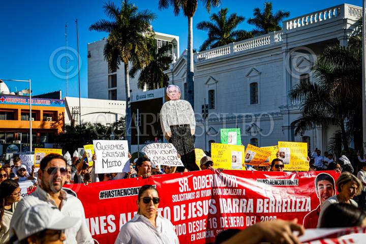 CULIACÁN, SINALOA, 26ENERO2025.Una vez más, la ciudadanía salió a las calles para exigir paz y el cese de la violencia en Sinaloa. Este domingo 26 de enero, miles de ciudadanos se reunieron frente a la Catedral y, con cartulinas, lonas y fichas de desaparecidos en mano, marcharon vestidos de blanco por la Avenida Álvaro Obregón hasta la cima de La Lomita. La marcha incluyó a personas con familiares desaparecidos, aquellos que han perdido a un ser querido por la violencia, han sido despojados de un vehículo, o cuyos comercios cerraron debido a la inseguridad que surgió tras el secuestro y entrega de Ismael "El Mayo" Zambada a Estados Unidos en septiembre pasado. El pasado jueves, la ciudadanía también salió a las calles para pedir justicia por el asesinato de los niños Gael, Alexander y su padre, con la participación de niños, adolescentes, estudiantes, padres, madres, abuelitos y abuelitas. FOTO: JOSÉ BETANZOS ZÁRATE/CUARTOSCURO.COM