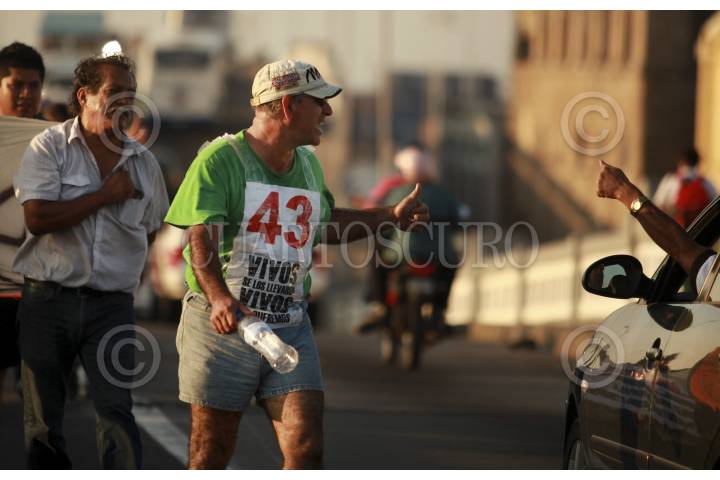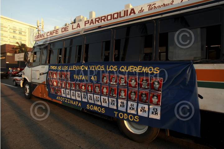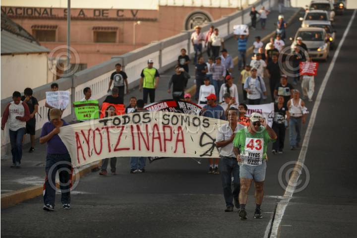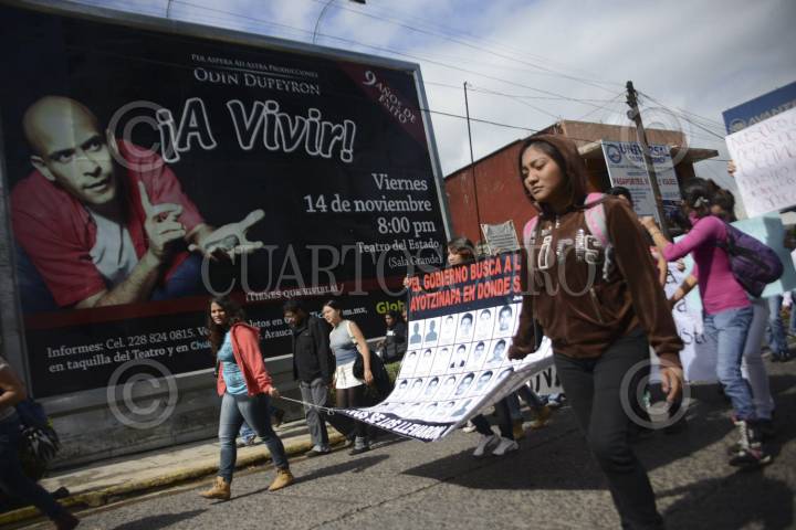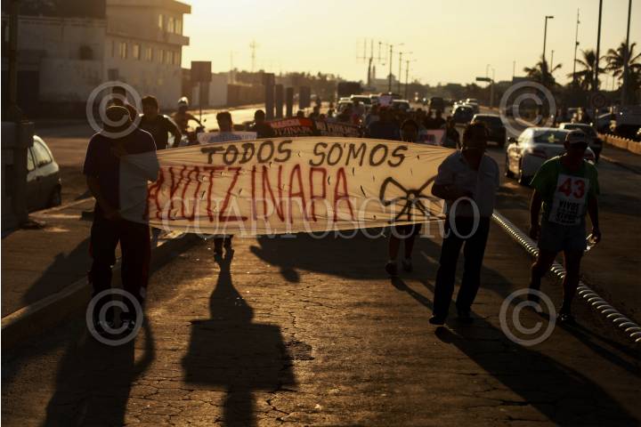 VERACRUZ, VERACRUZ, 22NOVIEMBRE2014.- Ciudadanos y maestros integrantes del Movimiento Magisterial Popular Veracruzano marcharon desde la ciudad de Cardel hasta el asta bandera de Veracruz para solidarizarse ante la situación de la desaparición de los 43 normalistas de Ayotzinapa en Iguala, Guerrero. La acción se denominó como “43 x 43”, en donde los manifestantes caminaron un total de 43 kilómetros sobre la carretera Xalapa-Veracruz. La marcha culminó en el boulevard costeño en donde exigieron justicia. FOTO: FÉLIX MÁRQUEZ /CUARTOSCURO.COM