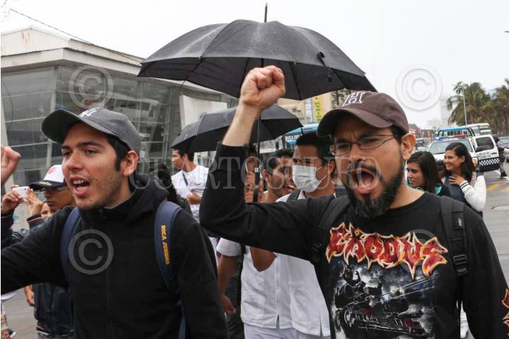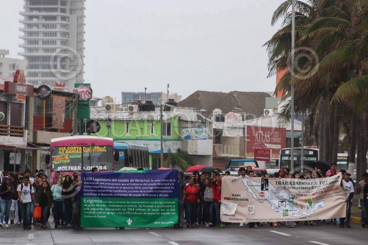 VERACRUZ, VERACRUZ, 26FEBRERO16.- Estudiantes y catedráticos de las facultades en la zona conurbada pertenecientes a la Universidad Veracruzana marcharon con la exigencia de que Gobierno del Estado pague la deuda con la máxima casa de estudios. FOTO: IVÁN SÁNCHEZ/ CUARTOSCURO.COM