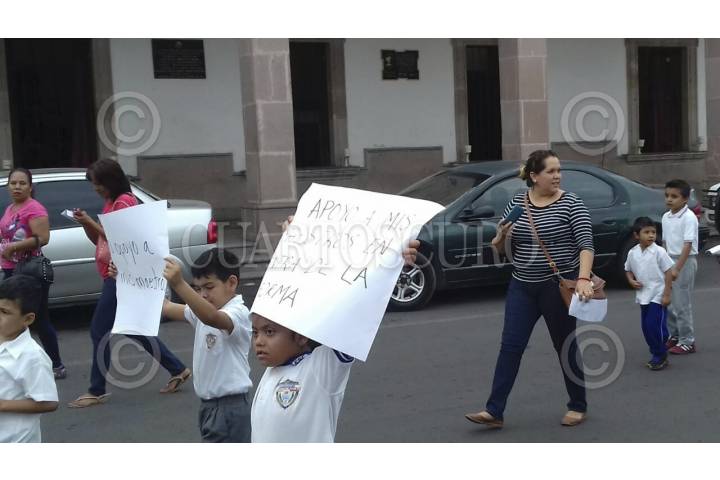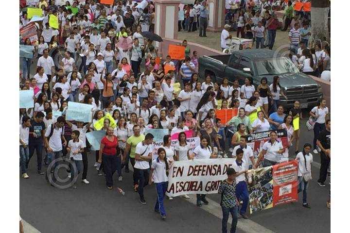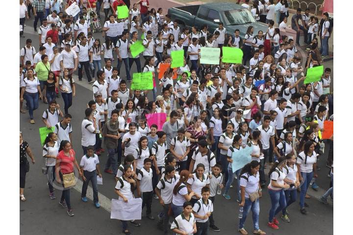 APATZINGÁN, MICHOACÁN, 14JUNIO2016.- La Coordinadora Nacional de Trabajadores de la Educación radicalizó este martes sus acciones de protesta en contra de la Reforma Educativa, al obligar a estudiantes de instituciones públicas de Apatzingán a marchar por su misma causa. Los centistas sacaron de las aulas a alumnos de la escuela Juan de la Barrera y Lázaro Cárdenas del Río, ubicadas en las colonias Niños Héroes y Lázaro Cárdenas, en la zona urbana de este municipio de la región Tierra Caliente. Padres de familia inconformes con esta manifestación, denunciaron que sus hijos llegaron de manera normal a sus respectivos colegios, y luego de que les pasaron lista, activistas de la CNTE les pidieron tomar cartulinas, mantas y globos para salir a las calles a sumarse a las acciones de rechazo a la Reforma Educativa. Los niños y jóvenes, además, fueron obligados a lanzar consignas durante su tránsito por calles de Apatzingán, siempre resguardados por integrantes de la Organización Magisterial Disidente. Según tres padres de familia entrevistados en unos casos los estudiantes fueron también amenazados con que serían expulsados de su plantel si no participaban en la marcha, y en otros les ofrecieron dos puntos adicionales en sus boletas. FOTO: CUARTOSCURO.COM