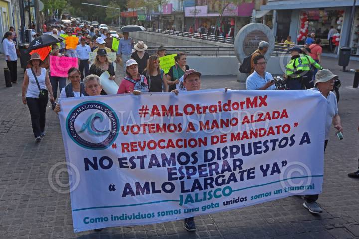 GUADALAJARA, JALISCO, 29JUNIO2019.- Decenas de personas que forman parte del colectivo Xiudadanos MX marcharon del Parque Juárez hacia la Rotonda de los Hombres Ilustres, esto para manifestar su inconformidad por la gestión del Presidente de la Republica Andrés Manuel López Obrador AMLO. FOTO: FERNANDO CARRANZA GARCIA / CUARTOSCURO.COM
