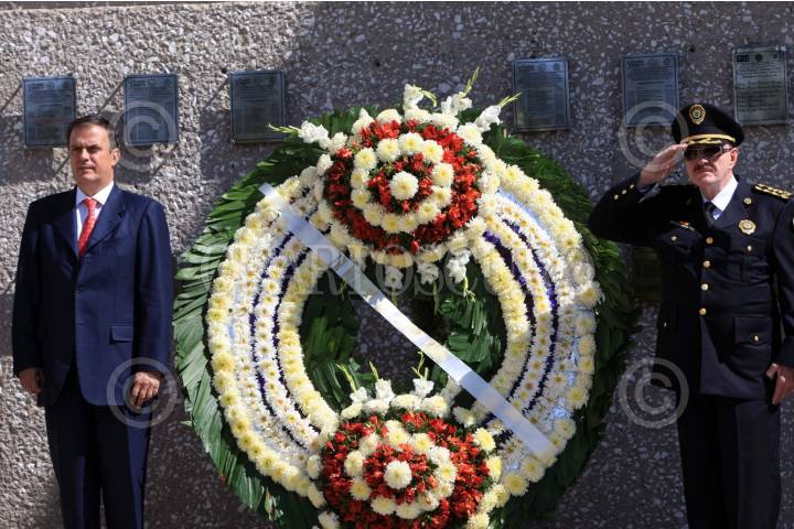 MÉXICO, D.F., 28JUNIO2010.- Marcelo Ebrard Casaubon, Jefe de Gobierno Capitalino, junto a Manuel Mondragon y Kalb, Secretario de Seguridad Publica, montaron una guardia de honor en el altar a la Memoria del Policia de Ciudad de México. FOTO: CUARTOSCURO.COM