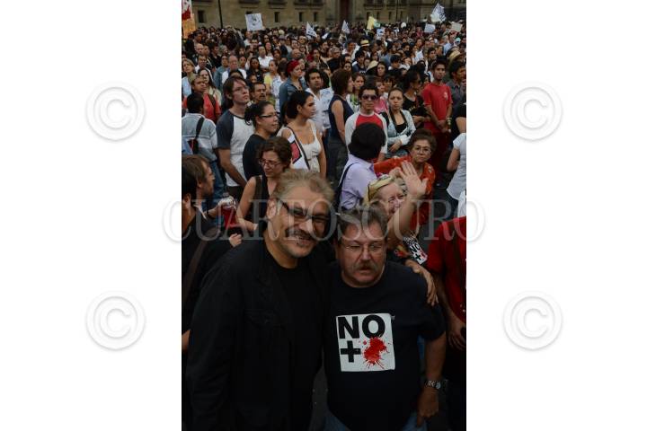 MÉXICO, D.F., 06ABRIL2011.- Daniel Cossio junto a Paco Ignacio Taibo II durante la marcha que partio del Palacio de Bellas Artes al Zocalo Capitalino donde sus principales consignas es el alto a la violencia que se vive en el pais. FOTO: PEDRO VALTIERRA/CUARTOSCURO.COM