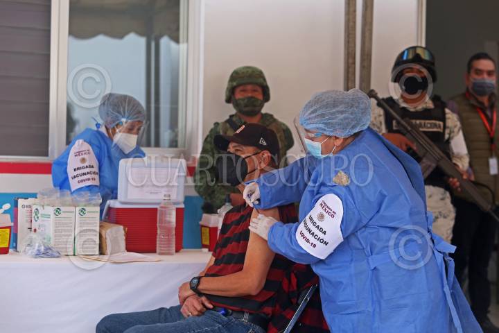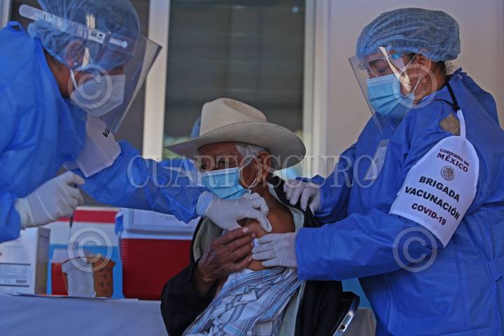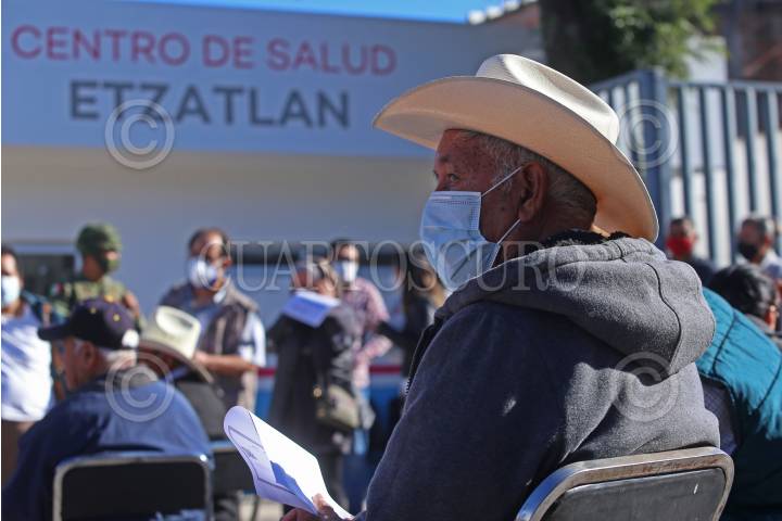 Adultos Mayores del Municipio de Etzatlán, Jalisco, reciben la vacuna de AstraZeneca contra el Covid-19 en el Centro de Salud del poblado.