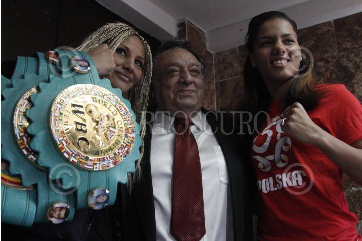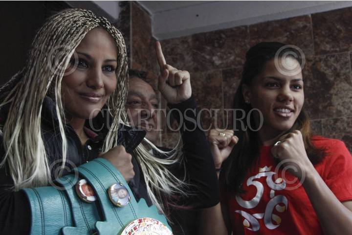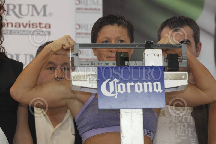 MÉXICO, D.F., 24FEBRERO2012.- Ceremonia de pesaje de Mariana "Barbie" Juarez y la rusa Anastasia Toktaulova por el titulo mundial mosca quienes se enfrentaran este sábado 25 en la Arena México. FOTO: IVAN MENDEZ /CUARTOSCURO.COM
