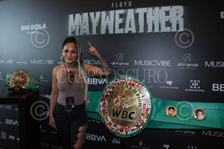 CIUDAD DE MÉXICO, 15MAYO2024. La boxeadora Mariana Juárez durante la conferencia de prensa “The one & only México, Floyd Mayweather” donde se dieron detalles del evento boxístico que se llevará acabo el próximo 24 de agosto en la Arena Ciudad de México. FOTO: EDGAR NEGRETE LIRA/CUARTOSCURO.COM