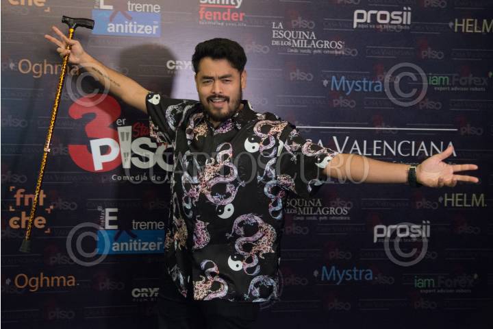 El comediante Edgar Villa "Villita", durante su llegada a la inauguración de la nueva sucursal del restaurante y bar "3er Piso: Stand Up: Comedia de Altura" en la colonia Anzures