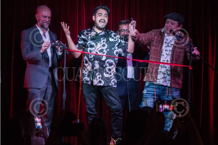 Los comediantes: Hugo "el Cojo Feliz", Edgar Villa "Villita", y el "Tío Rober", encabezaron el corte de listón de la inauguración de la nueva sucursal del restaurante y bar "3er Piso: Stand Up: Comedia de Altura" en la colonia Anzures.
