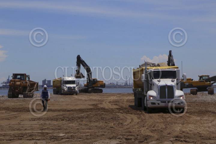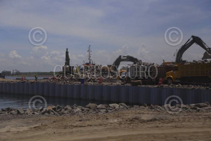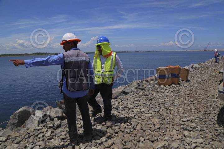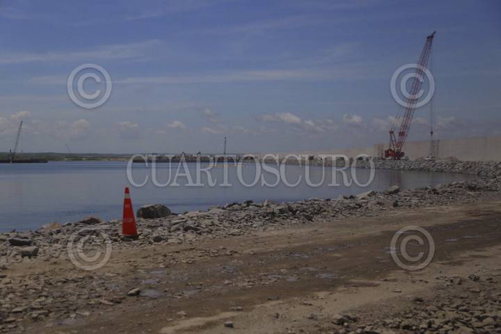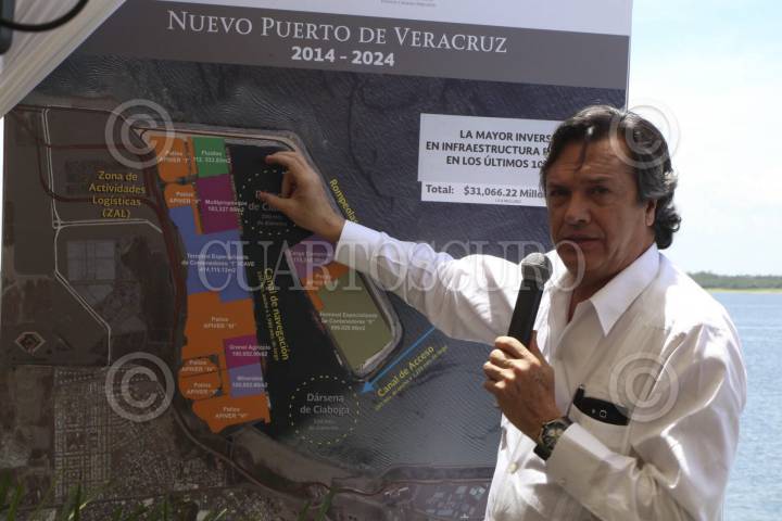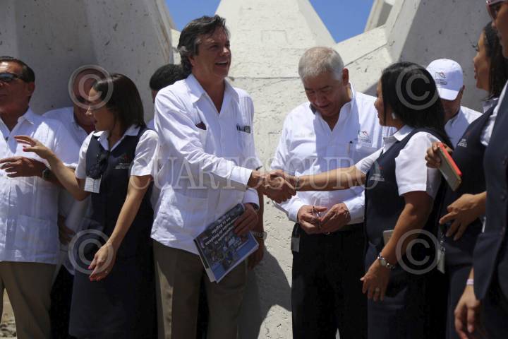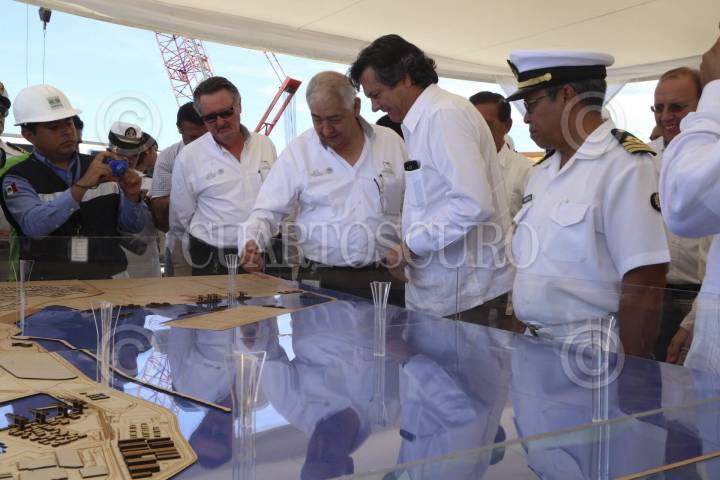 VERACRUZ, VERACRUZ, 30AGOSTO16.- Autoridades de la Administración Portuaria Integral de Veracruz (Apiver) estatales y federales encabezadas por el coordinador general de puertos y marina mercante, Guillermo Ruíz de Teresa, realizaron un recorrido de supervisión por la nueva escollera que forma parte de la ampliación del puerto; que lleva un avance del 62% y se estima concluya en los 4.2 kilómetros que rodearán la nueva zona de atraques con una inversión de 1 millón 650 mil pesos. FOTO: ILSE HUESCA /CUARTOSCURO.COM