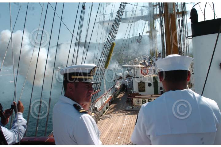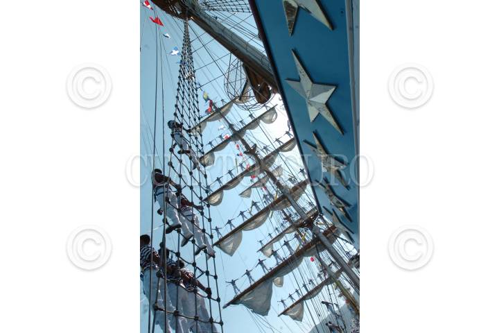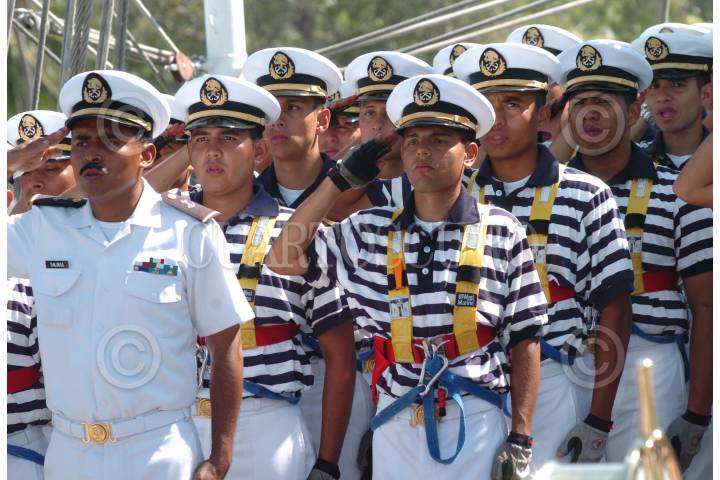 ACAPULCO, GUERRERO 19ENERO2006.- Marineros del Buque Escuela Cuauhtémoc, realizaron actividades de exivición durante la entrega del Baston de Mando que se le entrego al presidente de la república, esto en el mulle de la base naval del puerto del estado. FOTO: SAÚL LÓPEZ /CUARTOSCURO.COM