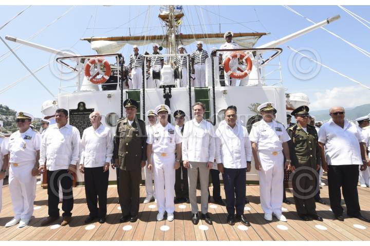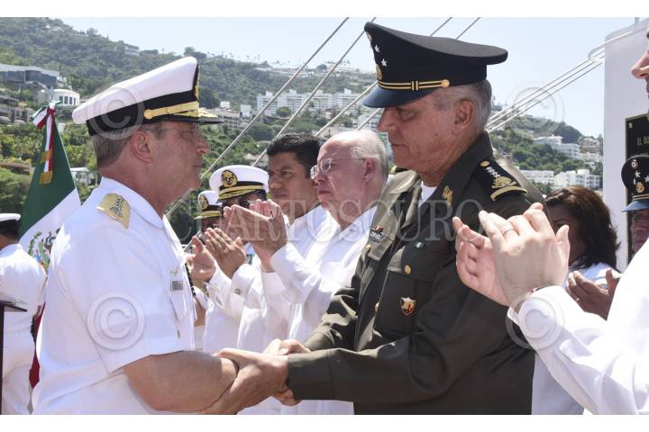 ACAPULCO, GUERRERO, 03OCTUBRE2016.- La mañana de hoy, arribó el Buque Escuela Velero "Cuauhtémoc" al puerto de Acapulco, al término del crucero de instrucción "Ibero Atlántico 2016". Durante la ceremonia de bienvenida, estuvieron presentes el titular de la Armada de México, Vidal Francisco Soberón Sanz; Salvador Cienfuegos, secretario de la Defensa; Aurelio Nuño, titular de la SEP; José Narro Robles, titular de la Secretaría de Salud, y el gobernador del estado Héctor Astudillo. FOTO: SEMAR /CUARTOSCURO.COM